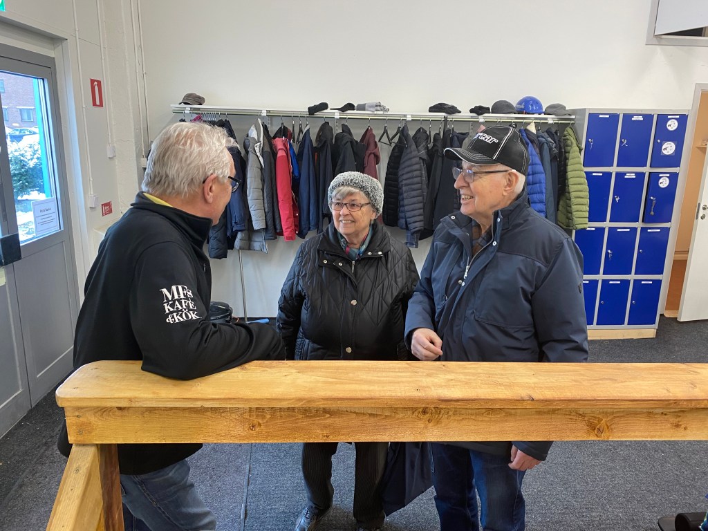 Här står Erna och Olle och pratar med tidigare motståndaren Bernt på väg till Kopparn. Tyvärr hjälpte det inte med mätta magar dom förlorade även sista matchen och halkade ned 2 placeringar till 10:e plats. Sensmoralen i detta ; ät i rättan tid .