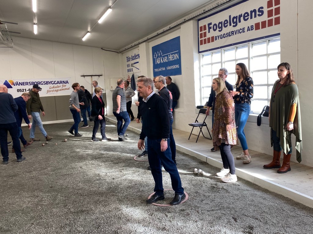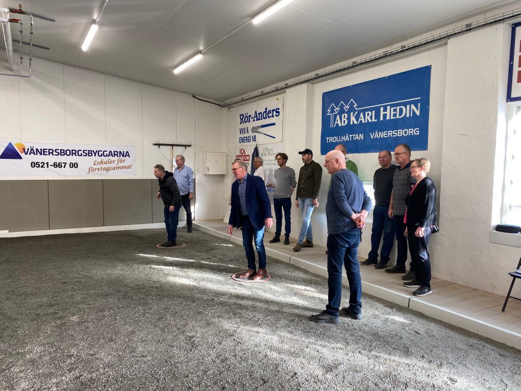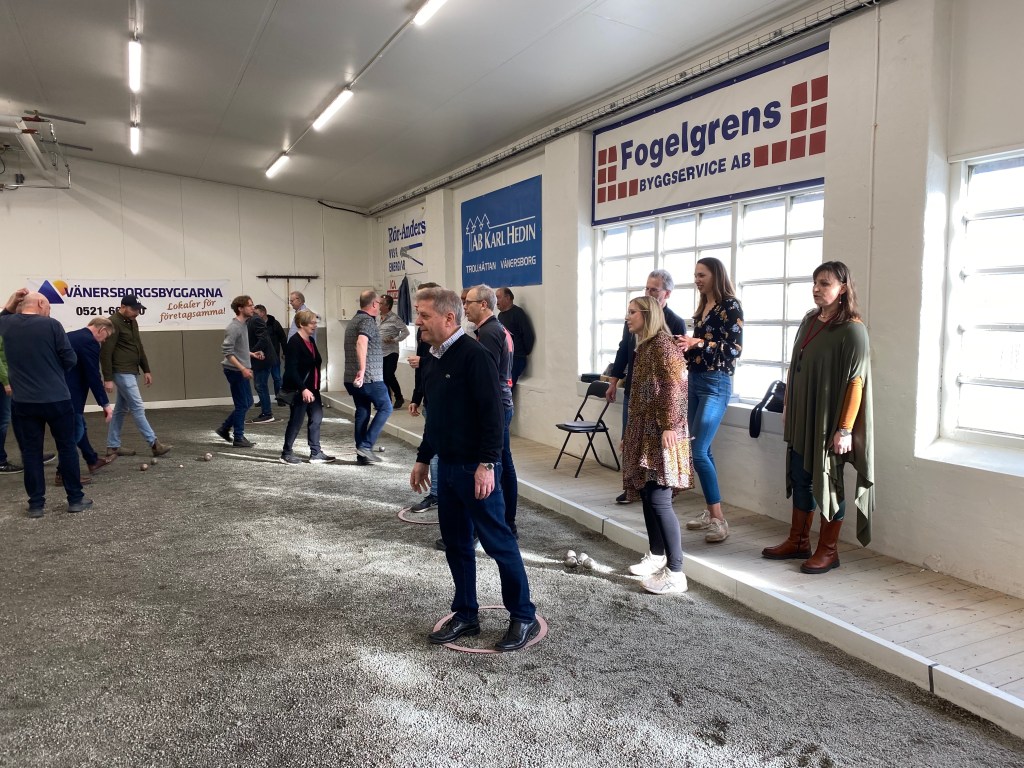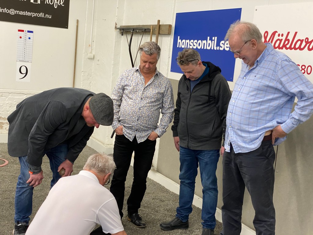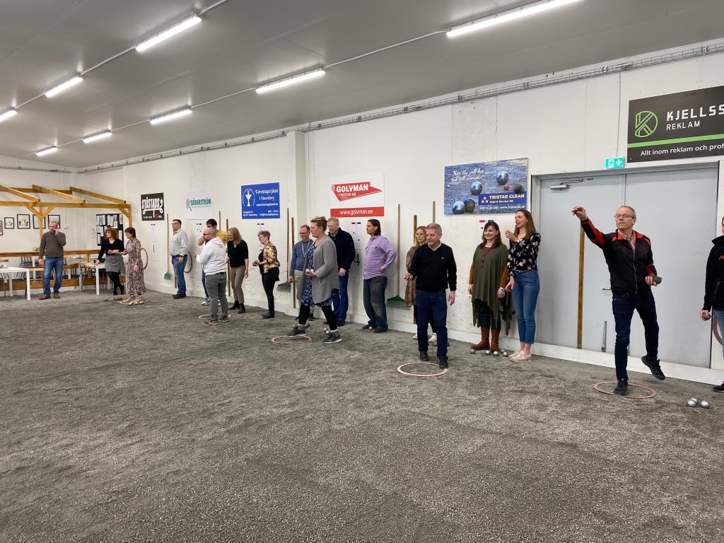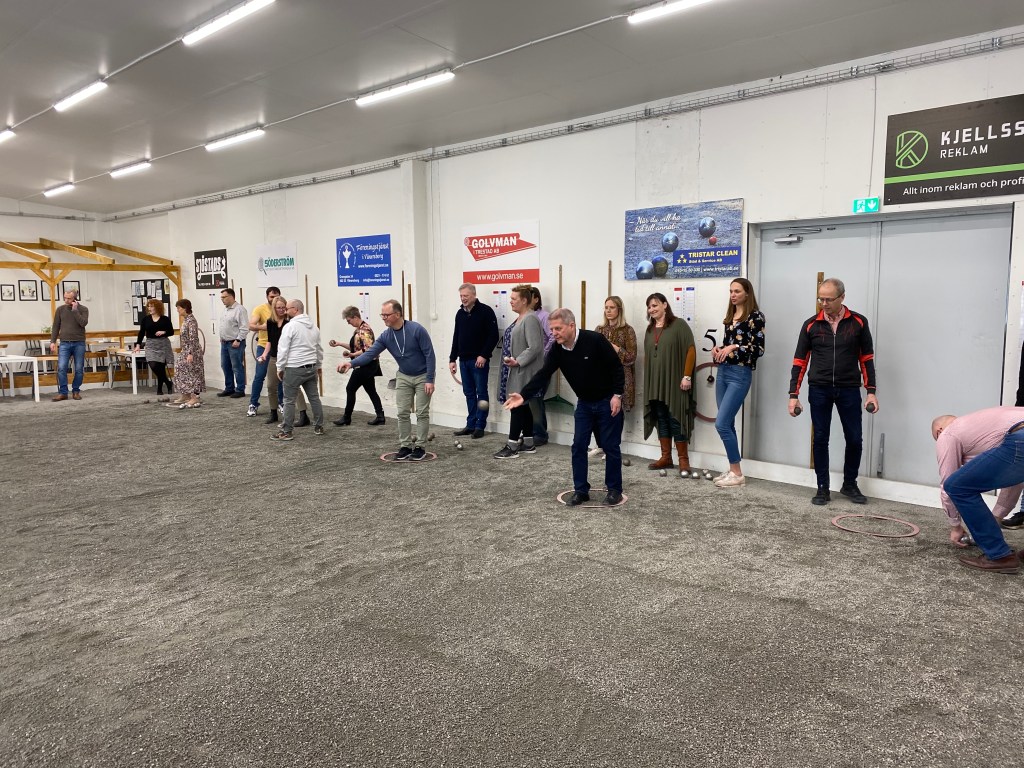 Avtackning och avslutning hos boulealliansen blev en succé för personalen hos Hyresgästföreningen . Ett 30-tal förväntansfulla , ivriga och muntra personer äntrade hallen för att prova på boule. Hallen fylldes snabbt och dom fem instruktörerna från alliansen fick fullt upp att göra. Alla indelades i dubbellag och genast efter bara några kastade klot började psykningarna . Dom mest entusiastiska började t.o.m. kratta banan mitt under matchen , för att kloten skulle rulla deras väg.