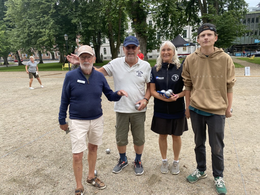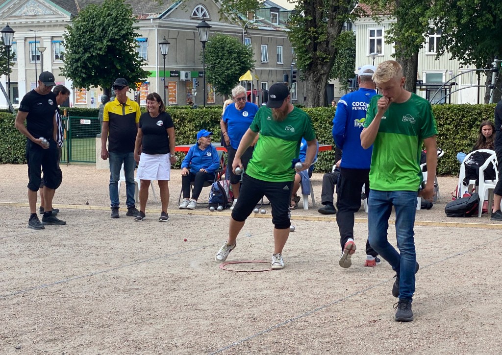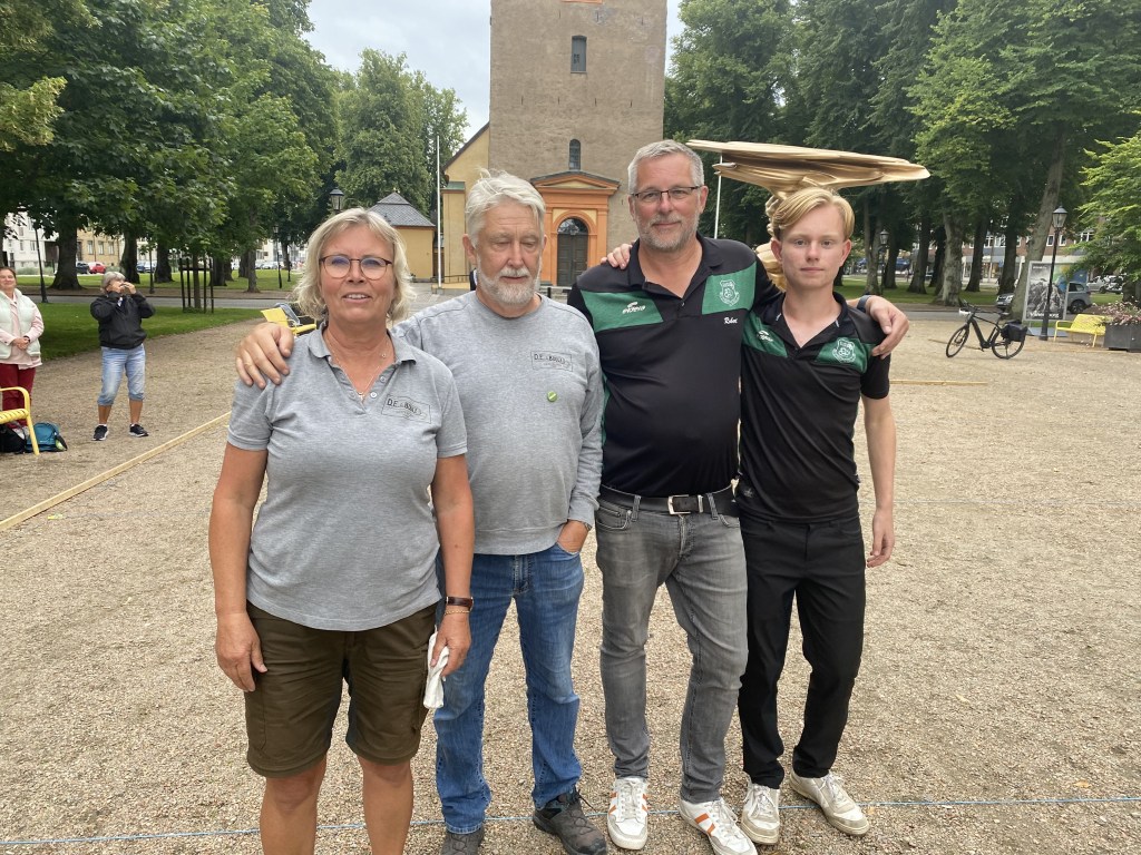 I A-finalan blev det mer spännande . En klart sevärd match där båda lagen bjöd upp till fint spel . Till slut fick Sanna Trogen och Stig Grundvall ge sig för Robert Björkebro och Felix Säre’n . Ett fint exempel på att flera generationer kan spela boule tillsammans. ( följ Felix , en blivande stjärna )