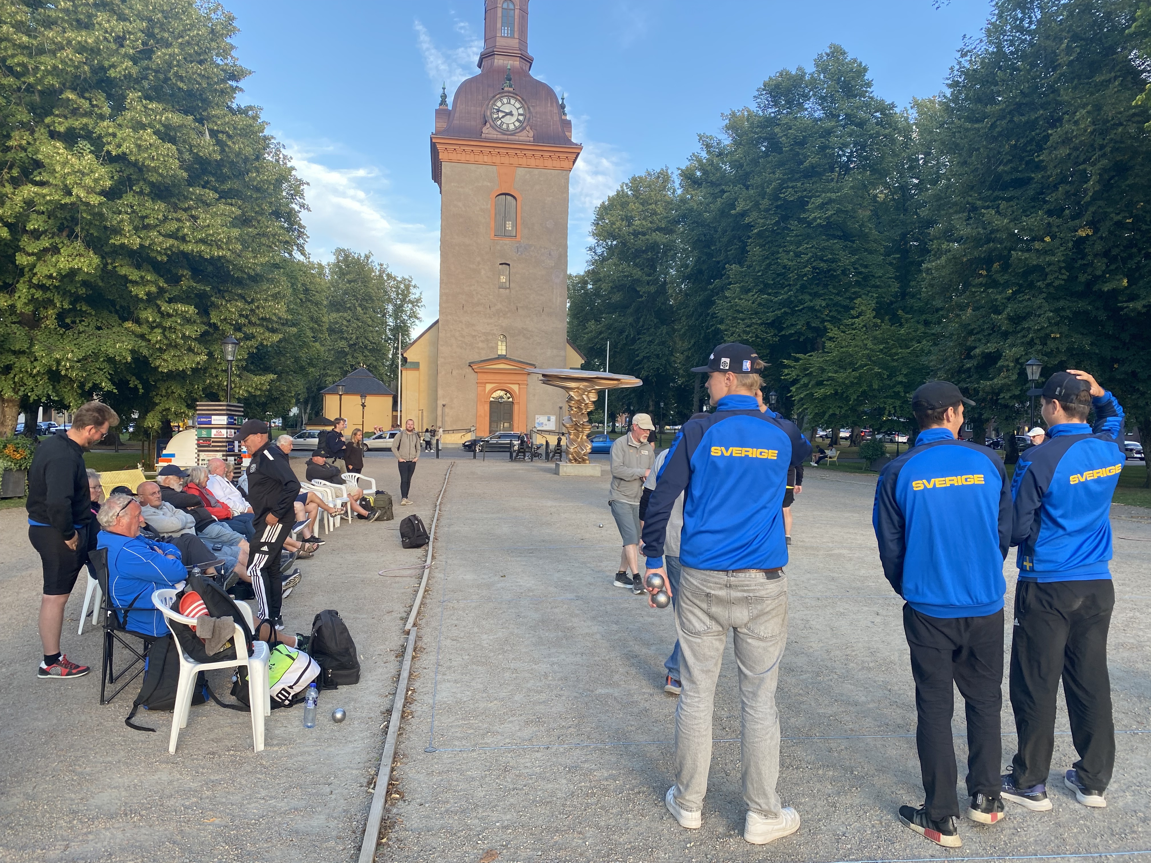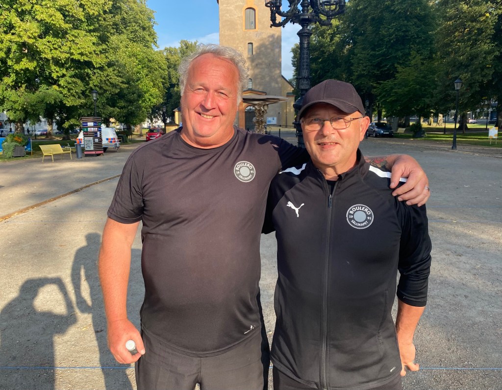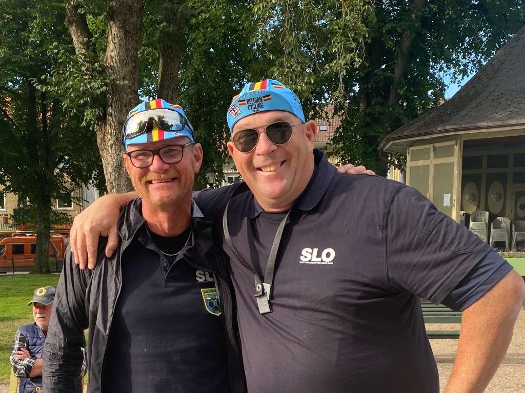 Två goa boule och cykelentusiaster från Götet som istället för klubbdräkter väljer support kepsar med Belgien cykel .