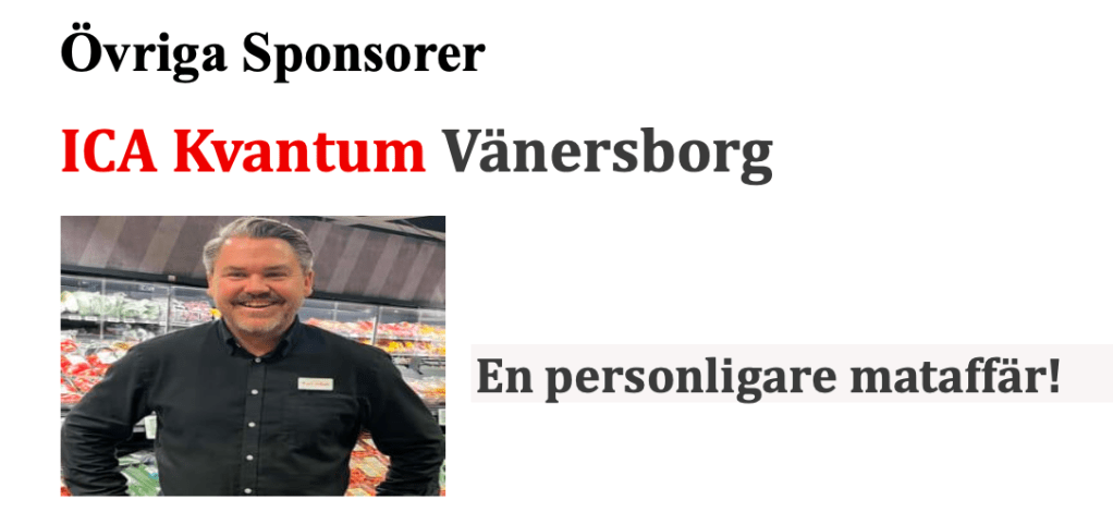 Huvudsponsorer : Ica Kvantum , Tristar Clean , Hemköp Torpahallen , AB Karl Hedins Bygg .