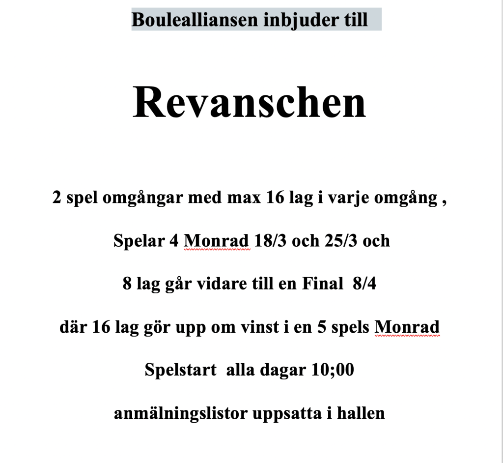 Vinterserien arrangeras av Boulealliansen och spelas i lokalen på Industrigatan 5 Vänersborg. Spelas Onsdagar och beräknas avsluta 4/3-26 . Spelform dubbel .