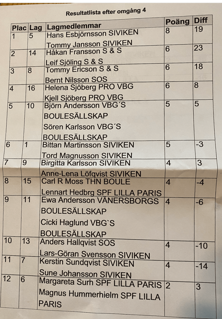 Resultat grundspelet Lilla Paris Open 15/8-24 30 av 44 lag